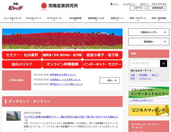常陽産業研究所は、会員の皆さまに対して、機関誌「JIR常陽産研NEWS」やインターネットサービス「常陽ビレッジ」を通じ、企業経営に役に立つ各種経営情報を提供しています。